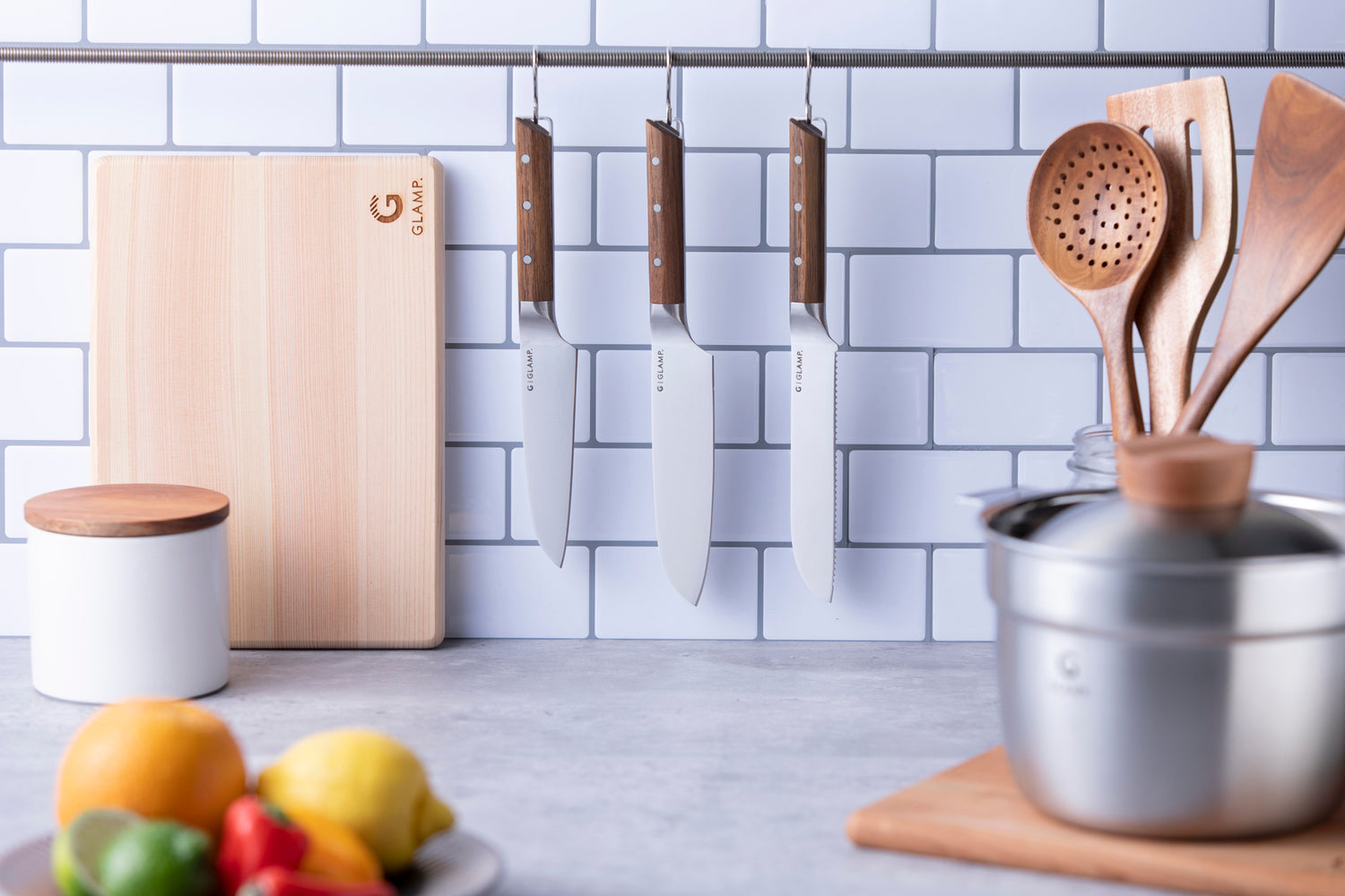 Unlike Japanese knives, GLAMP. compact knives have a stylish design that looks good in both modern kitchens and outdoors.