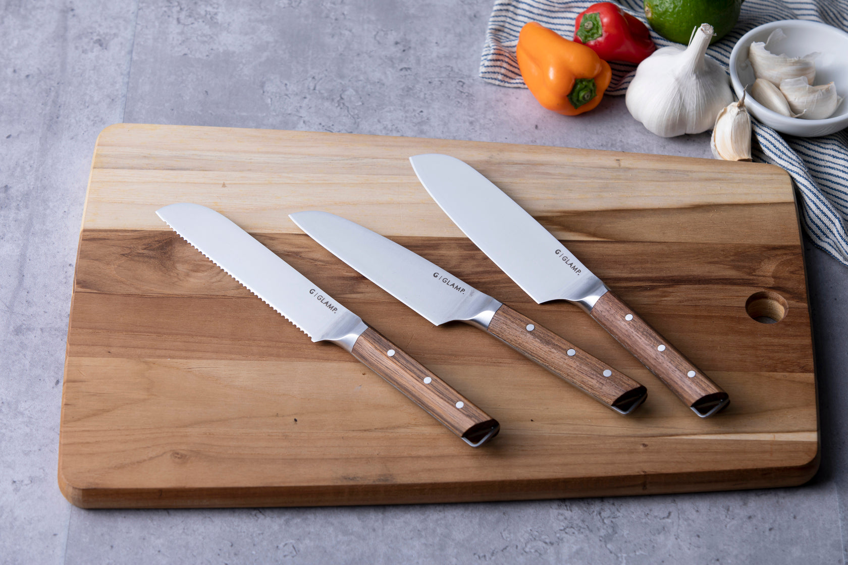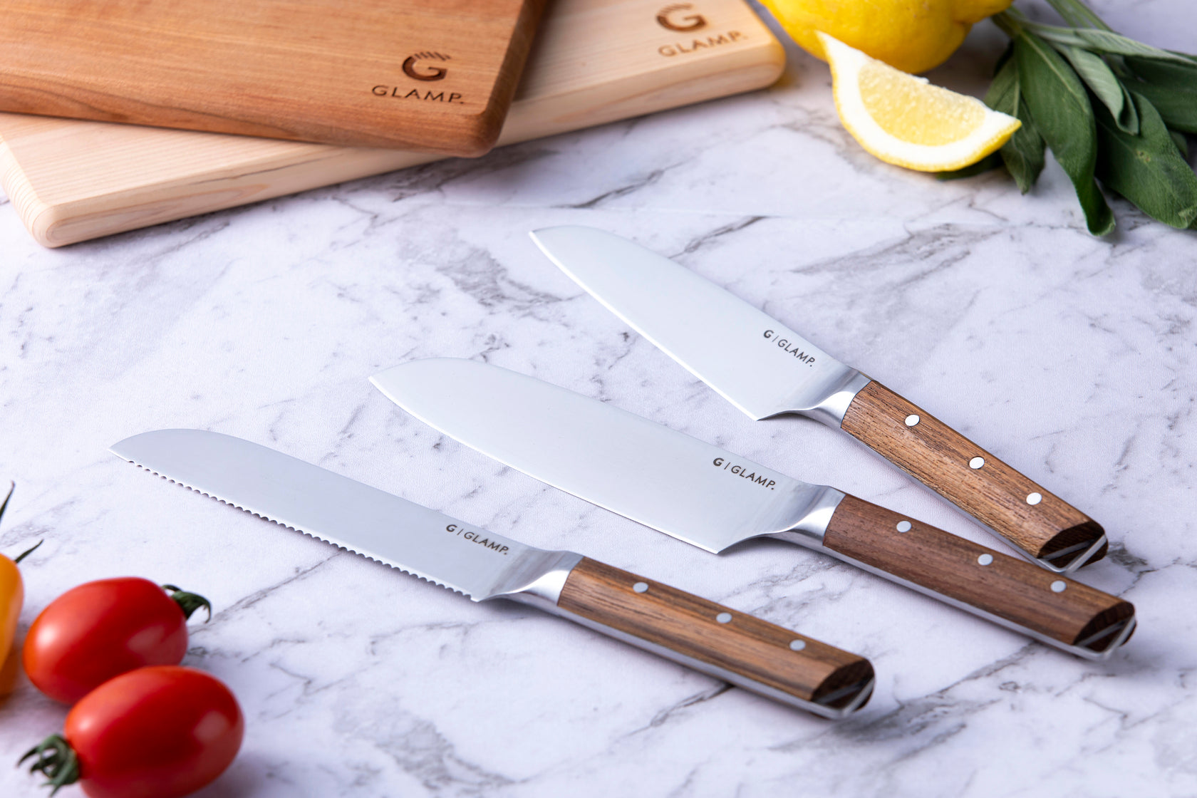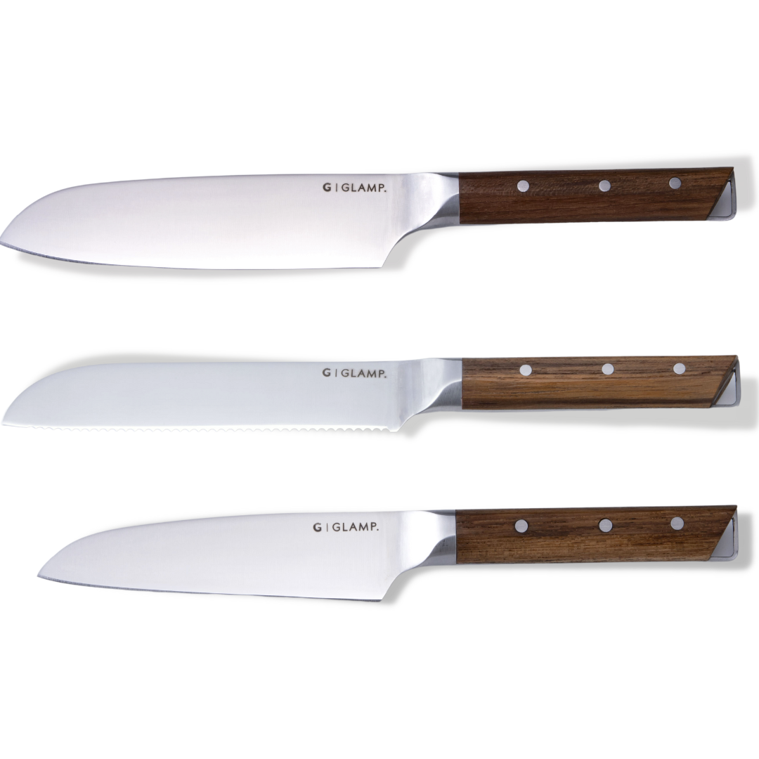 Set of 3 compact knives (Santoku knife + Petty knife + Bread knife) | GLAMP.