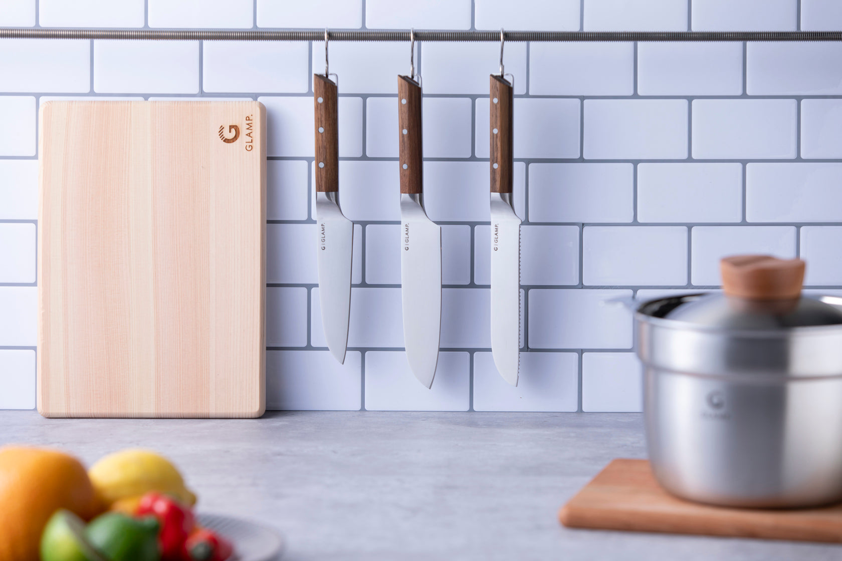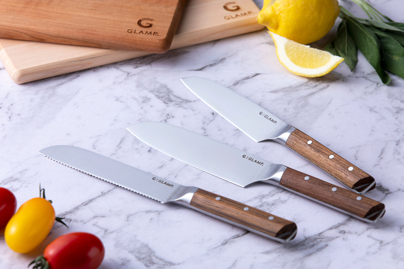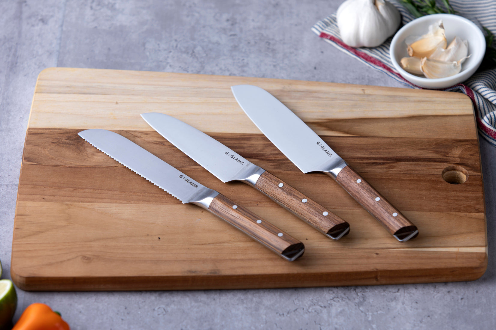 Set of 3 compact knives (Santoku knife + Petty knife + Bread knife) | GLAMP.