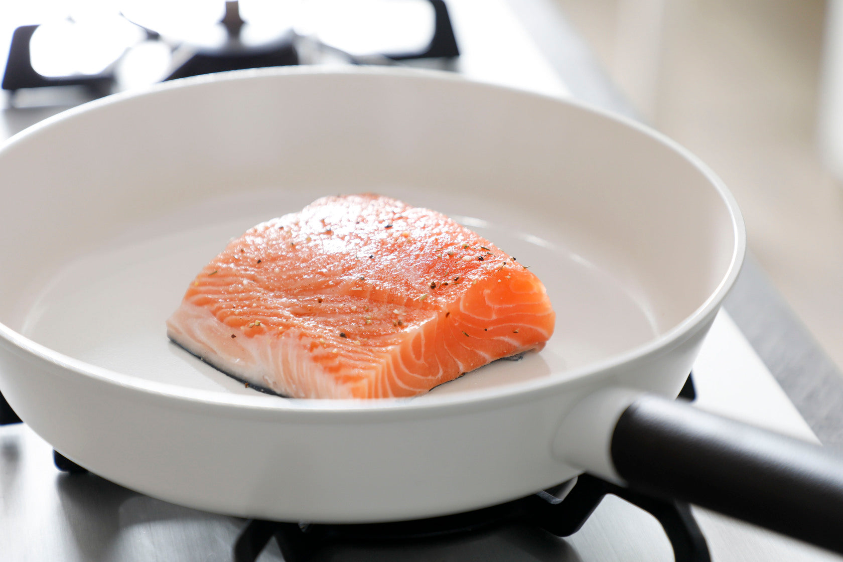 料理映えがよく、インテリアにも合うホワイトを基調に高級感のある 革調のダークブラウン差し色にしたデザイン性の高いフライパン。 PFOA※フリーの安心安全なセラミック加工は新技術を採用し こびりつきにくい使い勝手のいいコーティングです。